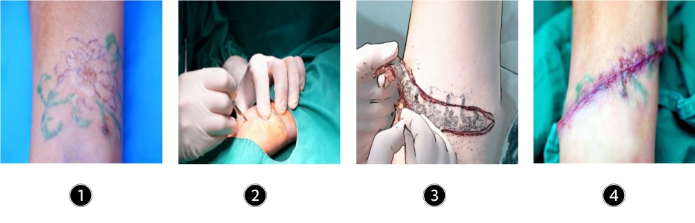 The main reason people who undergo laser tattoo removal opt for surgical removal is that laser treatment didn’t achieve the desired results, leaving them with the only option for complete removal. For example: